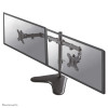 The Neomounts desk mount, model FPMA-D550DDBLACK is a tilt-, swivel and rotatable desk mount for 2 flat screens up to 32". This mount is a great choice for space saving placement on desks using a desk stand.\n\nNeomounts versatile tilt (90°), rotate (360°) and swivel (180°) technology allows the mount to change to any viewing angle to fully benefit from the capabilities of the flat screen. The mount is manually height adjustable from 0 to 46 centimetres. Depth adjustable from 4 to 40 centimetres. An innovative cable management conceals and routes cables from mount to flat screen. Hide your cables to keep the workplace nice and tidy.\n\nNeomounts FPMA-D550DDBLACK has three pivot points and is suitable for screens up to 32". The weight capacity of this product is 8 kg each screen. The desk mount is suitable for screens that meet VESA hole pattern 75x75 or 100x100mm. Different hole patterns can be covered using Neomounts VESA adapter plates.\n\nBy using an ergonomic mount neck- and back complaints can be avoided. Ideal for use in offices and on counters or in a reception area.\n\nAll installation material is included with the product.