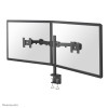 The Neomounts desk mount, model FPMA-D960D is a tilt-, swivel and rotatable desk mount for 2 flat screens up to 27". This mount is a great choice for space saving placement on desks using a desk clamp.\n\nNeomounts versatile tilt (180°), rotate (360°) and swivel (180°) technology allows the mount to change to any viewing angle to fully benefit from the capabilities of the flat screen. The mount is manually height adjustable from 0 to 45 centimetres. Depth adjustable from 10 to 43 centimetres. An innovative cable management conceals and routes cables from mount to flat screen. Hide your cables to keep the workplace nice and tidy.\n\nNeomounts FPMA-D960D has three pivot points and is suitable for screens up to 27" (69 cm). The weight capacity of this product is 8 kg each screen. The desk mount is suitable for screens that meet VESA hole pattern 75x75 or 100x100mm. Different hole patterns can be covered using Neomounts VESA adapter plates.\n\nFor curved monitor screens we recommend our FPMA-D960 PLUS models; our FPMA-D960DVBLACKPLUS is suitable for screens up to 49" (124 cm). The weight capacity of this product is 32 kg. This monitor arm is therefore extremely suitable for widescreens and curved screens. \n\nBy using an ergonomic mount neck- and back complaints can be avoided. Ideal for use in offices and on counters or in a reception area.\n\nAll installation material is included with the product.