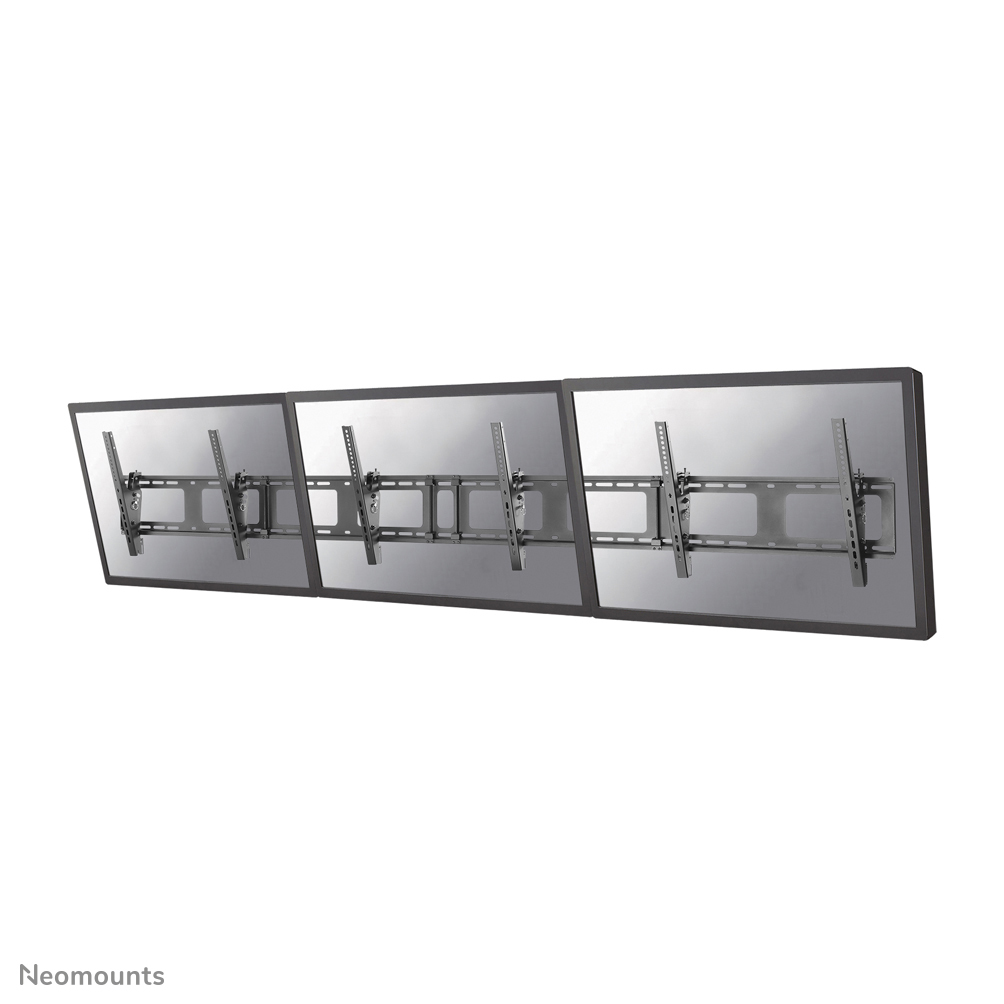 The Neomounts menu board wall mount, model NS-WMB300BLACK is a tiltable wall mount for three flat screens up to 52" (132 cm). This mount is a great choice when you want the ultimate viewing flexibility with your flat screen. Neomounts tilt (0°/-5°/-10°/-15°/-20°) technology allows the mount to change to any viewing angle to fully benefit from the capabilities of the flat screen. Depth of this mount is 7,6 centimetres. \nNeomounts NS-WMB300BLACK is suitable for 3 screens up to 52" (132 cm). The weight capacity of this product is 50 kg each screen. The wall mount is suitable for screens that meet VESA hole pattern 200x200 to 600x400 mm.\nAll installation material is included with the product.