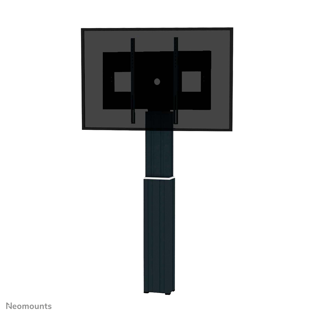 With the Neomounts PLASMA-W2500BLACK automatic height adjustable floor stand you place a large format flat screen on the floor and anchor it to the wall with the included wall mounts (7 cm distance). Get optimal positioning for both standing and seated audiences, in any application, in any part of your location. Perfect to use in a class room, boardroom, presentation room or public entrance.\n\nThe PLASMA-W2500BLACK is suited for screens between 42- 100" and has a load capacity of 150 kg. The mount is suitable for screens with a VESA hole pattern of 300x200 to 800x600 mm. \n\nThe mobile electric floor lift is automatically height adjustable over a height of 50 cm with a remote control. From the floor to the center the distance of the screen is variable from 119-169 cm. The position can be perfectly leveled with four adjustable feet under the central column.\n\nBehind the screen is a 6 cm deep space available to mount a media player or mini-computer. Cables can be guided at the back of the mount. The Neomounts PLASMA-W2500BLACK comes in a black RAL 9005 color and all installation material is included with the product. Warranty: 5 year.