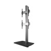The BTF841 is a premium mounting solution designed to mount two screens, one above the other, in either landscape or portrait orientation. A heavy duty steel base eliminates the need to bolt to the floor and adjustable levelling feet are included to accommodate uneven surfaces. The high-end aesthetic with an anodised aluminium finish and integrated cable management ensures finished installations are neat and tidy, making the BTF841 ideal for use in high-end professional or commercial applications.