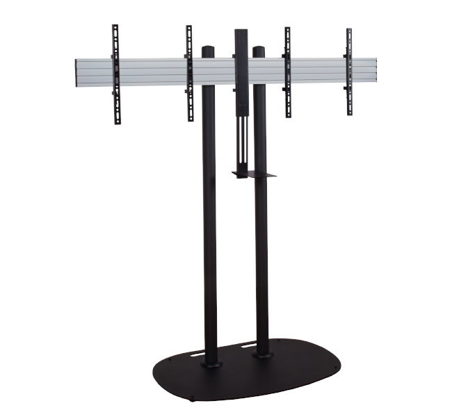 The BT8521 is the ideal freestanding video conferencing solution for twin screens up to 46". The stand is supplied with a shelf for VC cameras which gives the user the flexibility to mount their camera either above or below the screens and integrated cable management keeps finished installations neat and tidy. The low-profile base features include non marking rubber feet, grab handles for easy handling, and a cover plate that hides the grab handles