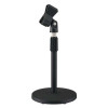 The ST-66A is a desktop microphone stand, and the stand shaft of two sections is provided. The upper shaft can be freely raised and lowered from 225 mm to 340 mm in height. The unit is supplied with the clip type microphone holder allowing to hold the microphone body by 35 mm in maximum diameter.
