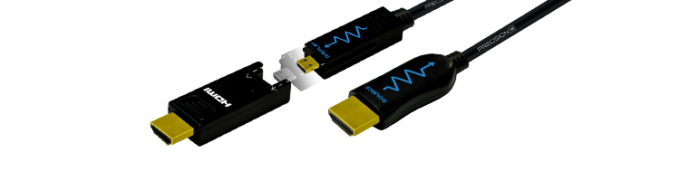 Our active Precision 18 HDMI Active Optical Copper (AOC) cables utilise a hybrid copper and optical transmission technology. Copper is used to manage the DDC handshake whilst optical handles the high data throughput to allow 18 Gbps transmission of distances of up to 100M. All latest 4K resolutions are supported including 4K 60 Hz 4:4:4 colour space, HDR, Dolby Vision and 8/10/12 bit colour.