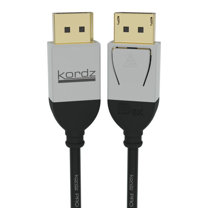 Kordz PRO Series 8K DisplayPort™ Cable is engineered to enrich professional displays through a flexible, slim profile, solid copper pins and a fire rated jacket. Our 8K DisplayPort™ Cable offers installation success, longevity and backwards compatibility with high resolution displays up to 8K and High Bit Rate 3 (HBR3) mode with data rate up to 32.4Gbps.