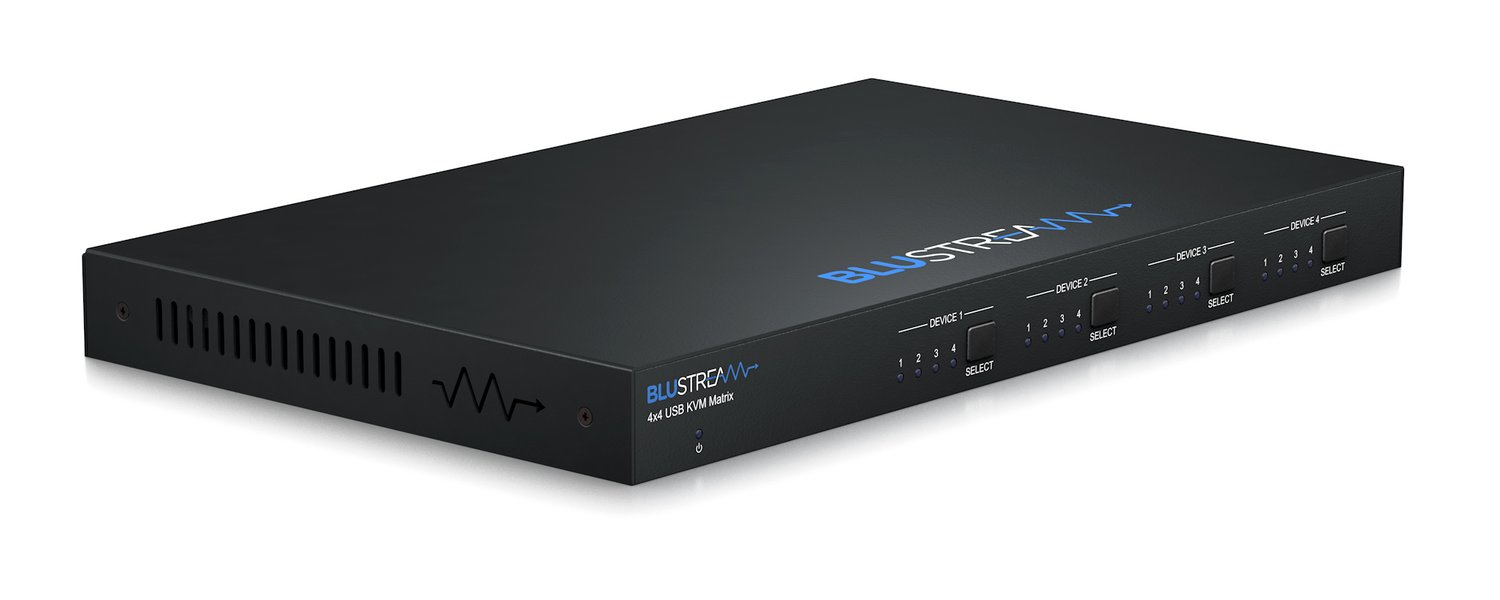 Our 4x4 USB 3.0 KVM Matrix offers unprecedented performance and value for the custom and commercial installation market. \n\nThe MX44KVM is a USB 3.0 Matrix package allowing 4x USB peripheral devices to be shared between 4x host devices, supporting plug-and-play capabilities, and USB data transfer rates up to 5Gbps. \n\nThe Matrix provides advanced features including cascading of multiple MX44KVM units, GPIO functionality for 3rd party product triggers, an in-built web browser interface module for control and configuration of the Matrix, along with RS-232 for seamless control integration. \n\nAn RS-232 loop-through connection allows for the MX44KVM to be intrinsically linked to any Blustream video matrix product for the addition of KVM support to our video-only switching products.