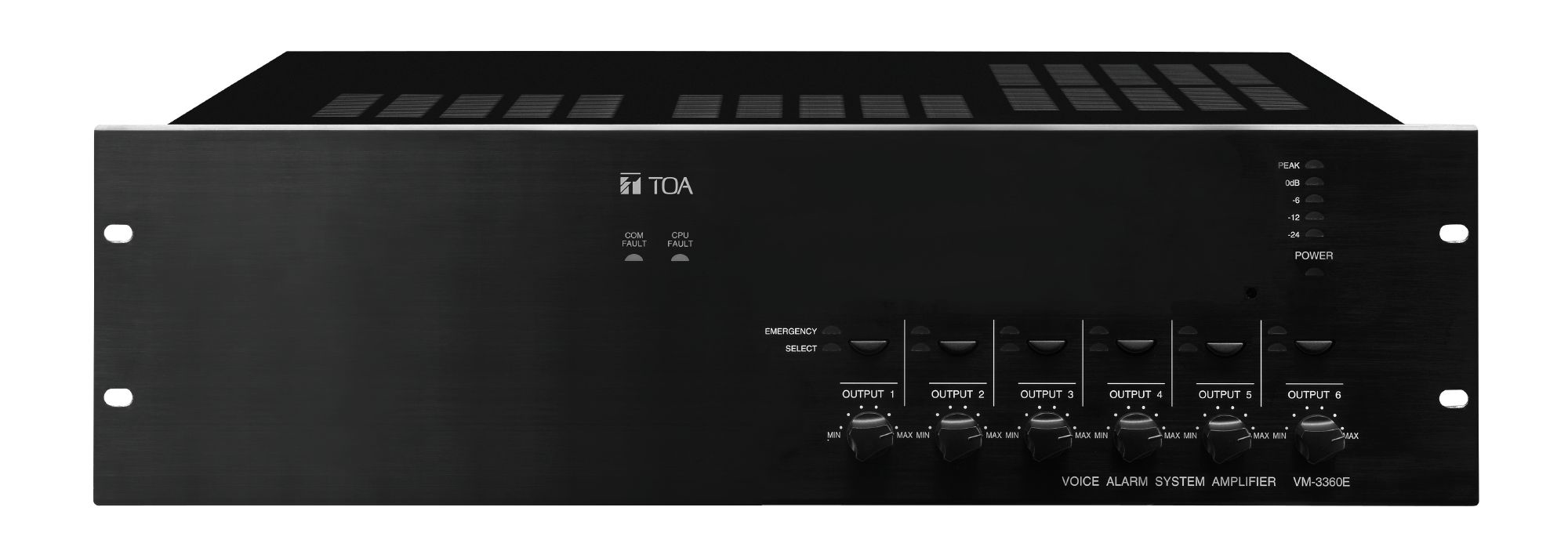 Microprocessor-controlled extension amplifiers for voice alarm compact amplifiers with complete monitoring according to VDE 0833-4 and VDE 0828-1.\n\n6 switchable and adjustable volume speaker outputs with a total of 360 Watt of rated output. \n\nAudio input for local transmission with choice of outputs over inputs. 8 universally usable inputs and 8 universally usable control outputs; 6 separate inputs for alarm control of the BMZ with switchable monitoring, one with 24-volt control (polarity); three separate control outputs with relay contacts for feedback to the BMZ: collective fault signal (changeover contact), emergency (changeover contact) and activated CPU off (make contact). Each line output a switching relay for example external volume control in 3- and 4-wire technology.\n\nAn appropriate additional amplifier can be used as a rescue and announcement enhancer, in the second case, announcements are made without the interruption of background music in durchsagelose areas can be made. The monitoring of the additional amplifier is taken over by the extension amplifier.