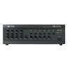 The VM-2240 is a multifunctional amplifier that can be mounted in an EIA-Standard equipment rack (3-unit size). The unit comes with 4 audio inputs including the background music input, and the speaker output section which has an internal attenuator and 5-zone selector. It permits not only general-purpose broadcast, but also Emergency Broadcast based on the EN60849 Standard which gives pre-recorded voice instructions (optional EV-200M is required) in the emergency situation. Broadcast can be made from an optional RM-200M Remote Microphone as well as from the amplifier, and can be remotely controlled from external equipment. In addition, for 100 V application the unit features the surveillance function (optional SV-200MA is required) which automatically checks the system for failures.\n\nMicroprocessor-controlled PA management amplifier, as a table top unit or with optional brackets in standard 19-inch cabinet racks can be mounted.\n\nThree balanced inputs for microphone or recording with control inputs, height / low tone control and switchable phantom power via XLR combo jacks, transformers easily retrofitted. Input for telephone announcements. The output circuits 1-5 can be associated separately each of the above-mentioned inputs. Up to 4 auditable digital stations can be connected via an RJ-45 connection. Two audio inputs for background music with two cinch Sockets and level before controllers, as well as height / low tone control. \n\nThere are 5 levels of priority.\n\n100 V power amplifier with 240 Watt of power, idle-secure and short-circuit protected, easily convertible to 70 V or 50 v 5 output circuits, individually zuschalt-and adjustable in steps 0, - 3, 6,-10,-15 and -20 dB at any power sharing as well as a collective call key. Switching display using LEDs. In the transmission of signals with high-priority automatic bypass the volume control and display of duty call operation. Compulsory control contact for external volume control.\n\n100V input to the 5 circles, output switchable by external duty call signal from parent PA headquarters, or switched-off device.\n\nAccording an exit before and after the total volume control to the use of additional amplifiers. Recording output for the master signal.\n\nSimple combination of up to 9 ELA management amplifiers to extend 45 circuits and power increase possible.\n\nAdditional control inputs for: throwing the text rendering of the digital text storage, remote activation, start and stop of alarm texts, activation of the 100V-Eingangs.\n\nFault status outputs for: power and emergency power supply, receivers and amplifier combination connection, errors in the text memory.\n\nLabels for the front taxable inputs and outputs.\n\nIn emergency mode play of two texts for warning and evacuation.\n\nDigital text storage and monitoring module can be retrofitted.