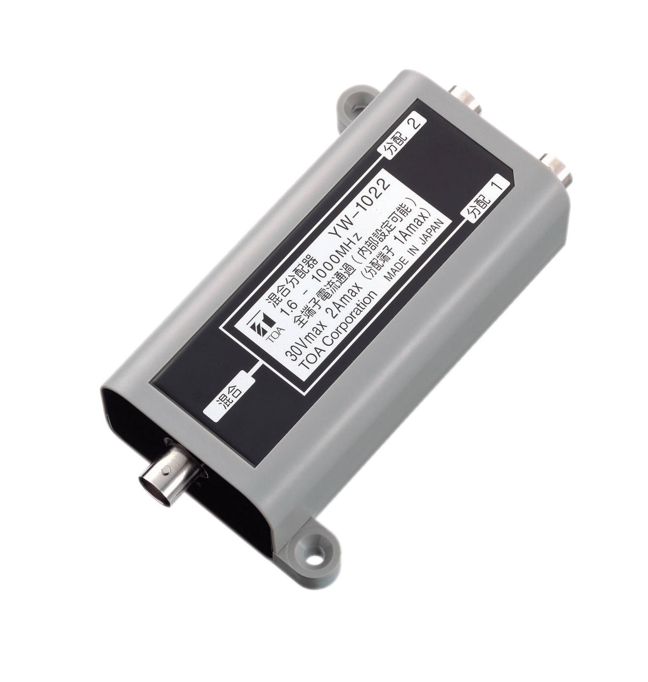 The YW-1022 is a distributor that can work in the frequency range of 1.6 to 1000 MHz (except 50 to 70 MHz). Power passing type permits easy power supply.