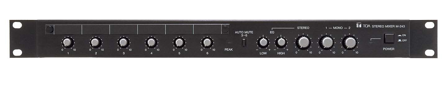 Stereo mixer\n\nThe M-243 is an EIA Standard equipment rack (1-unit size) stereo mixer that comes with two monaural inputs, four stereo inputs, one stereo output and two monaural outputs.