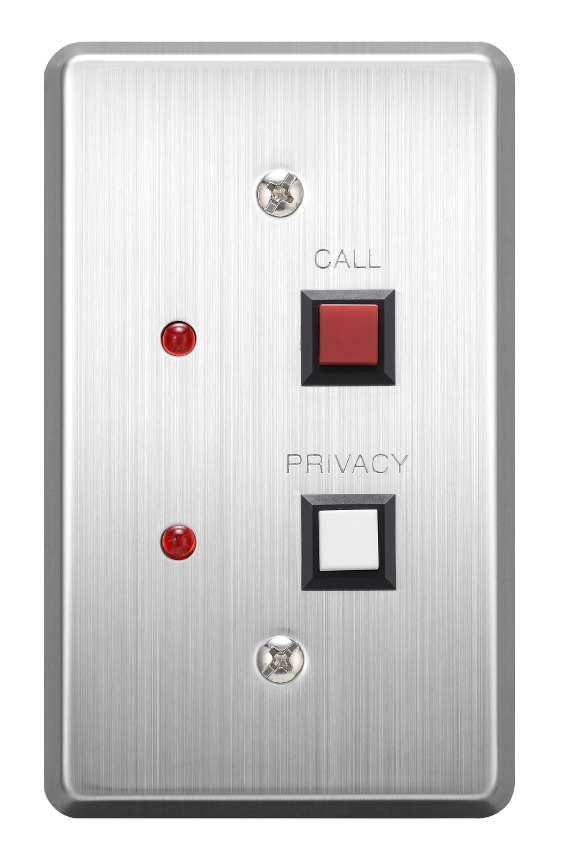 The RS-140 is a switch panel designed for use with the N-8000RS or N-8010RS 2-Core Shielded Substation Interface Unit. It is equipped with a Call button and a Privacy button, and can be installed in a 1-gang electrical box. By connecting a high impedance speaker to it, hands-free conversation with the master station can be made through its speaker. Also, it can be used in connection with the RS-141 Ip Intercom Option Handset.