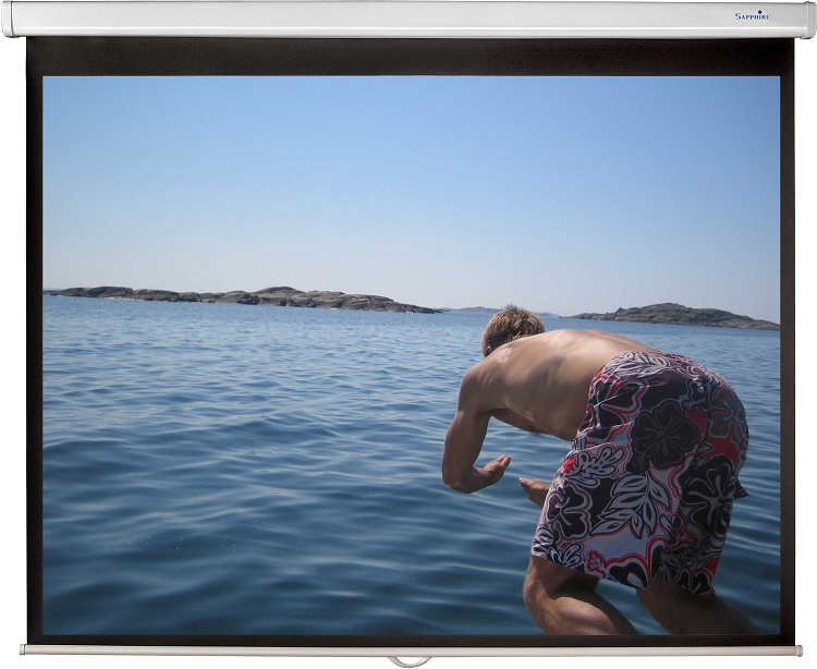 - All screens ship as standard with black borders to increase the perceived qualities of the projected image. \n- Heavy duty spring roller to ensure that the screen fabric is kept taut. \n- Simplistic pull-out system locks at every desired viewing height. \n- Supplied with a weighted bar to ensure the screen fabric is kept taut. \n- Pull handle integrated into weighted bar.