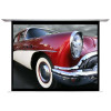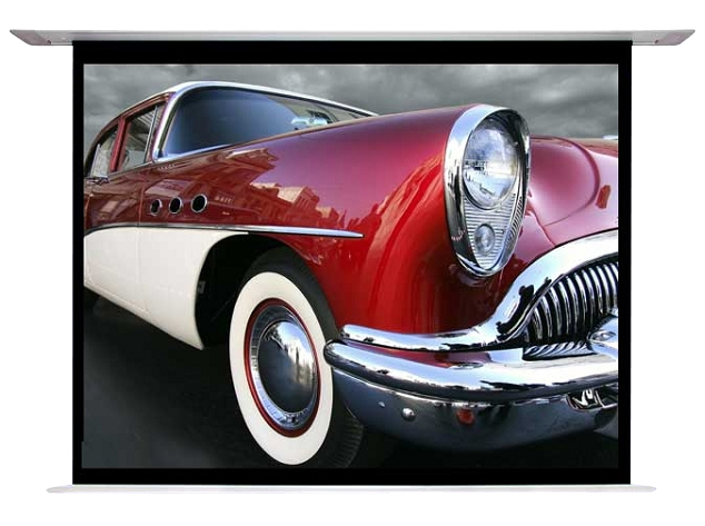 Sapphire Mayfair projector screen with radio frequency remote control\nThe Sapphire Mayfair range of projection screens are truly a work of art. We use only the best quality materials and each one is tested at length before leaving the factory.\n\nAlthough it is difficult to convey the screen quality online. The triple laminated glassfibre surface is designed to lay flat with no curls extending into the viewing area. The gain is 1:1 which we consider best for modern projectors which have plenty of brightness. The viewing angle is very wide and the black border all around marks the image and improves your perception of the contrast ratio.\nThe screen fabric has black backing meaning you can place the screen in front of a window and no light will come though the projector screen fabric.\nThe price of Sapphire Screens is comparable with many lower quality offerings. We put our faith in the product by offering a three year warranty - this will give you complete piece of mind. Make sure you consider this important aspect before buying an inferior product.\n\nAll Sapphire Mayfair projection screens come with a remote control. This model has an inline switch and radio receiver box around 1.3m from the casing. There is a further 1.3m of cable to a plug the other end of the control box. It will operate at up to 30 metres in the right conditions. Unlike IR, radio does not require line of sight.\n\nIn situations where you want to fit an inline switch or connect this to a 240v relay then the RAD screen in the one to buy -not the infra red as it has four core wires to the inline box (earth,neutral,live drop, live retract). Should you want an RS232 solution from Sapphire, you need to buy the screens ending with ATR and an optional module.