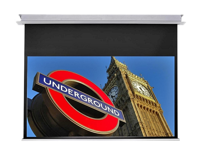 Made with such care and attention it is shame to hide it in the ceiling!. When fitted you will hardly notice the screen other than a very smart ribbed aluminium profile edged by a stylish curved end panel at each side of the screen. As it is all white it will blend in with most ceilings. \n\nFabric specifications:\n\nSapphire's matt white fabric is composed of triple ply fibreglass laminate which helps prevent wrinkles and waves. The screen fabric consists of a special material that helps prevent the loss of light, making it compatible with non short throw projectors. Our screen fabrics are designed to be fire, water, and mould resistant and can be cleaned if necessary. The top layer of the fabric has microdots that are made with PVC technology that helps create the best possible reflection.\nThe 1.1 gain reflects the same amount of light back that the projector produces achieving a true cinema experience. \nThe back of the fabric is completely black enabling you to put this in front of a window.