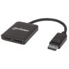 Easily distribute a single Ultra-High-Definition (UHD) signal to multiple displays.\nThe Manhattan DisplayPort to Dual DisplayPort - MST Hub streams a 4K DisplayPort (DP) signal from a single UHD source to up to two UHD displays.\n\nFlexible Solution for Many A/V Applications\nIdeal for trade shows, classrooms, video conferencing, presentations and retail applications, the Manhattan DisplayPort to Dual DisplayPort - MST Hub features a built-in booster for added signal strength. It's a great choice for splitting and distributing a synchronous signal, in either mirrored or extended modes, to multiple 4K DP displays. MST mode creates a video wall from two displays giving the user a more immersive experience while gaming, in a conference setting or in a home office.\n\nQuality Construction and Easy Installation\nFull compliance with DisplayPort, HDCP 2.2 and DVI 1.0 ensures that the Manhattan DisplayPort to Dual DisplayPort - MST Hub can provide long service and reliable performance. Quickly connect DP cables (not included) and the included USB power cable, and this affordable, Ultra-High-Definition 4K DisplayPort solution is complete - no software/hardware configuration or complicated settings required.