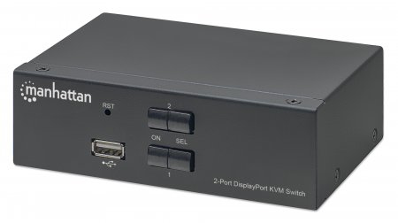 The Manhattan 2-Port DisplayPort KVM Switch is a compact solution for providing access and control over two DP/USB-equipped computers from a single keyboard, mouse and monitor. It helps save you time on installation with its included combo cables — there's no need to purchase additional ones — that easily connect directly to the system.