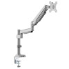 Rugged Aluminum Desk Clamp Lifts Your Monitor Above Your Work Area’s Surface\nThis VESA-compliant desktop clamp mounts a flat- or curved-screen display above your desk, table or workstation, allowing you to free up valuable surface space. Recommended for home or office use, the DDR1732SAL fits most flat- and curved-panel monitors from 13 to 34 inches. The durable aluminum frame tolerates frequent adjustments, and the swiveling aluminum arm supports up to 19.8 pounds (9 kg). Instead of clamping the unit to your desktop, you may install it using the included grommet. All hardware is included. Cable management brackets along the arms prevent excess cord clutter.\n\nSwivel, Tilt and Rotate the Screens to Find the Most Comfortable Viewing Angles\nThe gas spring arm adjusts independently to optimize viewing angles, minimize glare and improve ergonomics. To minimize screen glare, reduce eye fatigue and increase viewing comfort, the mount features -90° to +90° tilt, -90° to +90° swivel and 90° rotation for positioning your screen. Easy screen adjustment lets you quickly find just the right angle without interrupting your workday.\n\nConnect Your Favorite Devices to Help You Get Through the Workday\nThe base of the DDR1732SAL features a USB 3.0 port with pass-through charging for connecting a USB mobile device. Two 3.5 mm audio jacks allow connection of a microphone and speakers.\n\nVESA-Compliant Mounting Ensures Display Compatibility\nVESA (Video Electronics Standards Association) promotes uniformity in the video electronics industry by developing standards for TVs and monitors. For hassle-free display compatibility, this monitor stand supports the following VESA mounting hole patterns: 75 x 75 and 100 x 100.