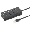 4-Port USB Hub with Type-A plug for more ways to connect your USB-A devices\nThe Manhattan 4-Port USB 3.0 Type-A Hub turns one of your device's SuperSpeed USB-A ports into four so you can easily connect a keyboard, mouse, flash drive and more. Devices that fit the USB 3.2 Gen 1 spec (formerly known as USB 3.0) can reach transfer speeds up to 5 Gbps for external storage, printing and more. The hub's SuperSpeed ports are backward compatible to run older USB versions 2.0 or even 1.1. You can also charge your phone or tablet since the Hub supplies up to 5 V / 0.9 A of power.\n\nConnectivity you can take with you\nThis hub's durable case, compact size and bus power mean greater portability for you when you have to pack up and go. You don't have to worry about carrying an additional power supply, which makes the hub an ideal travel companion. Simply unplug it from your upstream device, disconnect your peripherals and put what you need in your laptop bag to be on your way. Alternatively, if you find that you need more power for your devices, the hub includes a DC input to connect a 10 W power adapter (not included).\n\nTurn your ports on and off as needed\nWith a power switch for each port, this hub gives you complete control over which devices are using power or valuable system resources. The individual switches make it so constant plugging and unplugging is no longer necessary. Simply press the button when you want to activate or deactivate a port.\n\nUniversal compatibility for easy installation\nThis universal USB 3.0 hub will work with a wide range of computers because it requires no additional software or drivers. It installs automatically when you connect it to your laptop or desktop so you can be up and running quickly. It also works with a range of operating systems such as Windows®, macOS®, Linux and Chrome OS, so it’s multi-platform compatible. - 180887
