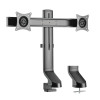 Low-Profile Monitor Desk Mount Makes It Easy to Adjust the Height of Your Monitors\nAdjusting the height of desktop flat-panel displays at home or the office often requires a lot of effort - loosening fasteners, moving the monitor up and down, tightening knobs to secure the monitor in place. With the DDR1727DC, all it takes is a simple turn of the easy-grip knob on the back of the vertical support for fast one-touch adjustment from 9.4 to 18.5 inches. The monitor arm is compatible with flat-panel screens ranging from 17 to 27 inches. \n\nChoose Clamp or Grommet Mounting to Match Your Preference\nThis monitor mount includes a clamp for attaching it to the edge of a desk or table and a grommet for secure mounting through the desktop. The clamp supports surfaces ranging from 0.4 to 1 inch thick. Grommet mounting works with surfaces from 0.4 to 1.6 inches thick. Maximum weight capacity is 15.4 pounds (6.9 kg) per screen. Cables are efficiently routed through the rear of the arm to reduce clutter and keep cords organized.\n\nSwivel, Tilt and Rotate the Screen to Find the Perfect and Most Comfortable Viewing Angle\nThis monitor-arm desk mount adjusts independently to optimize viewing angles and improve ergonomics. To minimize screen glare, reduce eye fatigue and increase viewing comfort, the mount features -10° to +10° tilt, 10° swivel and 180° rotation for position your screens in portrait or landscape orientation. Easy screen adjustment lets you quickly find just the right angle without interrupting your workday. The slim design makes this dual-monitor mount ideal for sit-stand workstations.\n\nVESA-Compliant Mounting Ensures Display Compatibility\nVESA (Video Electronics Standards Association) promotes uniformity in the video electronics industry by developing standards for TVs and monitors. For hassle-free display compatibility, this mount supports the following VESA mounting hole patterns: 75 x 75 and 100 x 100. Mounting hardware is included.\n\nSure to Stand Up to Frequent Use\nThe durable steel frame withstands the stress of repeated adjustments. Its scratch-resistant powder-coated finish tolerates frequent handling and blends easily into any home or office décor.
