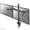 The Neomounts desk mount, model FPMA-D550DBLACK is a tilt-, swivel and rotatable desk mount for 2 flat screens up to 32". This mount is a great choice for space saving placement on desks using a desk clamp or grommet mount.\n\nNeomounts versatile tilt (90°), rotate (360°) and swivel (180°) technology allows the mount to change to any viewing angle to fully benefit from the capabilities of the flat screen. The mount is manually height adjustable from 0 to 44 centimetres. Depth adjustable from 4 to 46 centimetres. An innovative cable management conceals and routes cables from mount to flat screen. Hide your cables to keep the workplace nice and tidy.\n\nNeomounts FPMA-D550DBLACK has three pivot points and is suitable for screens up to 32". The weight capacity of this product is 8 kg each screen. The desk mount is suitable for screens that meet VESA hole pattern 75x75 or 100x100mm. Different hole patterns can be covered using Neomounts VESA adapter plates.\n\nBy using an ergonomic mount neck- and back complaints can be avoided. Ideal for use in offices and on counters or in a reception area.\n\nAll installation material is included with the product.