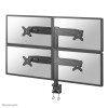 The Neomounts desk mount, model FPMA-D700D4 is a tilt-, swivel and rotatable desk mount for 4 flat screens up to 30". This mount is a great choice for space saving placement on desks using a desk clamp.\n\nNeomounts versatile tilt (180°), rotate (360°) and swivel (180°) technology allows the mount to change to any viewing angle to fully benefit from the capabilities of the flat screen. The mount is manually height adjustable from 0 to 70 centimetres. Depth 15 centimetres. An innovative cable management conceals and routes cables from mount to flat screen. Hide your cables to keep the workplace nice and tidy.\n\nNeomounts FPMA-D700D4 has two pivot points and is suitable for screens up to 30" (76 cm). The weight capacity of this product is 8 kg each screen. The desk mount is suitable for screens that meet VESA hole pattern 75x75 or 100x100mm. Different hole patterns can be covered using Neomounts VESA adapter plates.\n\nBy using an ergonomic mount neck- and back complaints can be avoided. Ideal for use in offices and on counters or in a reception area.\n\nAll installation material is included with the product.