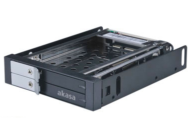 2 bay 2.5" mobile rack allows two 2.5" SSD/HDD to fit into a 3.5" PC drive bay. Intelligent design for tool-free HDD access.\n- Supports 2 x 2.5” SSD/HDD\n- Fits in 3.5" PC bay\n- Durable stainless steel structure\n- Security lock with key