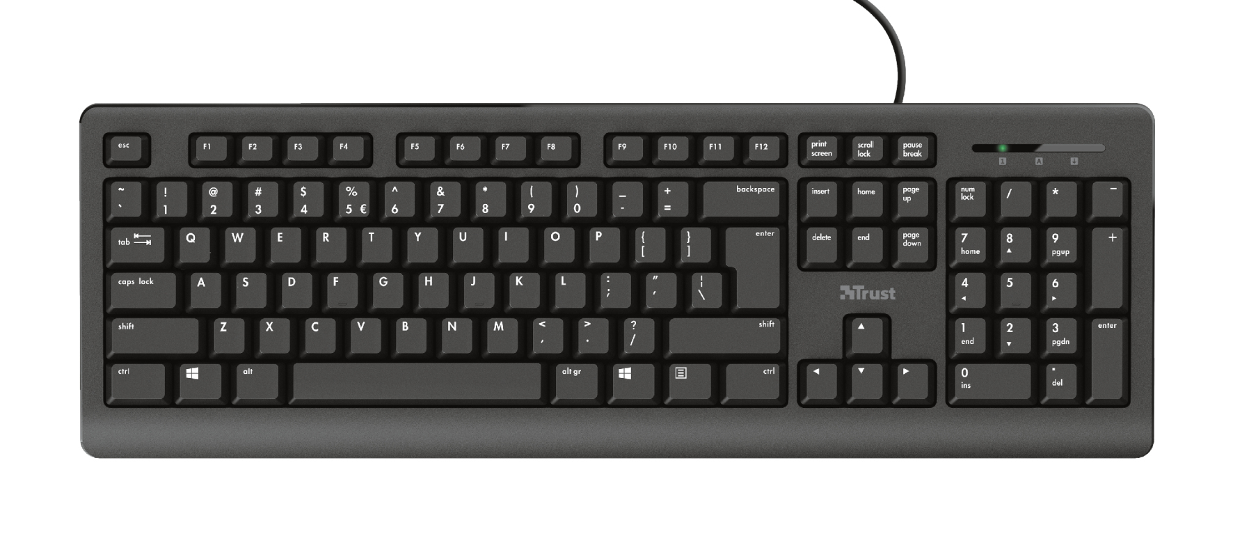 Full-size keyboard with silent keys and spill-resistant design.\n\nCover the Basics\nKeyboards come in all shapes and sizes, but what if you only need to cover the basics? The Trust Primo does exactly that. It has a full-size layout, spill resistant keys and it’s height adjustable. And thanks to the silent keys, you will type for hours on end without bothering your co-workers. The Primo does exactly what you want it to do.\n\nComfort\nA good keyboard needs to be comfortable to use. The low profile keys in this full-size keyboard and the fold-out feet provide exactly the comfort you need to focus on your work. You don’t even have to worry about spilling something on the Primo, as the spill resistant design will let you continue your work without hassle. Just poor yourself a new cup of coffee and let’s go.\n\nEasy\nPlug in the 180cm long USB cable and you’re good. When you’ve got work to do, you don’t want to worry about installing software or setting macros. The Primo is a workhorse so you can focus on the job at hand.