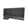 Comfort Wireless Keyboard & Mouse Set\nComfortable wireless keyboard-and-mouse set with silent keys and buttons, made with recycled materials.\n\nThe quiet type\nWork comfortably and in silence with the Trezo Comfort Keyboard and Mouse set – the quietest keyboard and mouse we’ve ever made. And when we say quiet, we’re talking ‘library quiet’.\n\nWorking for the planet\nReady to get eco-friendly? With a 4* Clevergreen rating, the Trezo is made with 85% recycled materials and arrives in sustainable cardboard packaging.\n\nReady to clock in\nA durable design means this desk set is ready to work overtime. Meanwhile, use the included Duracell batteries to enjoy up to 48 months of working time for the keyboard and 12 months for the mouse.\n\nYour comfort zone\nA fully wireless keyboard with integrated wrist rest and soft keystrokes keeps you productive and comfortable – and your hands happy.\n\nAt the push of a button\nEasily accessible media and office keys mean you’re an instant away from sharing that genius presentation – or sneaking in a bit of Netflix over your lunch break.