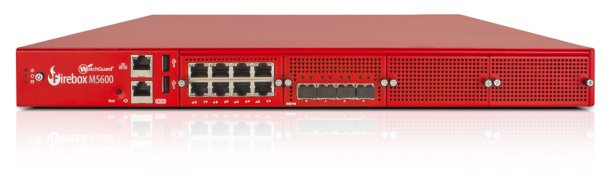 The WatchGuard Firebox M5600 is the latest addition to the Firebox family. It comes with 8 x 1Gb copper and 4 x 10 Gb fibre ports as standard and has two network port extension bays, allowing expantion of the port density to suit individual network requirements. This flexibilty as well as up to 60Gbps firewall throughput makes the M5600 ideal for datacentres or head offices with multilple remote locations to protect.