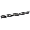 The N254-024-SH-6A 24-Port 1U Rack-Mount STP Shielded Cat6a Feedthrough Patch Panel meets or exceeds Cat6a specifications and works with USOC, T568A and T568B wiring to comply with industry standards. Fully rated for 10 Gbps Ethernet data transfer speeds, this low-profile patch panel manages and organizes the cabling in your high-density network. No 110 punchdown termination is required. Just plug your Cat6a cables into the 24 fully shielded RJ45 coupler jacks on both sides of the panel. The detachable cable management bar keeps patch cables neat, tidy and efficiently organized on the back of the panel. Ports are clearly numbered and labeled to help you identify connections. Mounts easily into 1U of an EIA-standard 19-inch rack. Grounding wire included. Compliant with the Federal Trade Agreements Act (TAA) for GSA Schedule purchases.\nIEC 60512-99-001 Compliant\nPoE Certificate Number: 2018-773\nSTP Cat6a Patch Cord (Requires PoE cable if used in PoE setting)