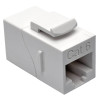 Strengthen your high-speed network with the N235-001-WH Cat6 Straight-Through Modular In-Line Snap-In Coupler. It connects two Cat6 patch cords to create one longer cable, and its keystone design is perfect for convenient feed-through patching when used with a standard data wallplate (such as N042-001-WH). Built for ultra-fast performance, this is an ideal coupler when setting up premise wiring, voice/data networking, telecommunications and Ethernet connections.\n\nCompatible with all Cat6 cables, the N235-001-WH features straight-through wiring and 50-µin gold-plated contacts designed to resist corrosion. The durable, high-impact polycarbonate housing resists scratching and is colored white to blend in with any color scheme. This coupler is UL-listed and meets all requirements for EIA/TIA Cat6 compliance. It’s also backward compatible with Cat5e and Cat5 LANs.
