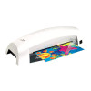 - Laminates 80 micron pouches.\n- Audio and visual indicators clearly signal when ready to laminate.\n- Release trigger for clearing misfed documents.\n- Advanced controls accurately monitor lamination temperature.\n