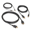 6-ft. (1.83 m) Cables Connect Your Computer's HDMI, USB and Audio Ports to a KVM Switch\nThis HDMI cable kit includes three cables for connecting your computer to a KVM switch. Recommended for the B024-HU08 and B024-HU16 KVM switches, the kit saves you money and cuts down on unnecessary clutter by combining necessary cables into one convenient bunch.\n\nHDMI\nThe HDMI cable lets you view the video content of your computer via the console's connected monitor. It supports Ultra HD resolutions up to 3840 x 2160 (@ 30 Hz) for crystal-clear 4K x 2K video.\n\nUSB\nThe USB cable connects the KVM switch's USB-B port to your computer's USB-A port. It enables you to control all connected computers from one centralized keyboard/mouse, while also accessing external flash drives, printers, scanners or other devices connected to the switch's USB peripheral ports. The cable supports USB 2.0 data transfer speeds up to 480 Mbps.\n\n3.5 mm Audio\nThe 3.5 mm stereo cable connects external multimedia speakers, a microphone or headphones and share them between computers.\n\nQuality Construction Provides Superior Signal Transfer\nIntegral strain relief gives the cables extra flexibility, reduces stress, and helps the cables move freely without cracking or breaking loose from the connectors. Foil and braid shielding delivers reliable, error-free signal quality and protection from EMI/RFI line noise that can distort or destroy data. Molded gold-plated connectors with gold-plated contacts provide maximum conductivity and minimum data loss to guarantee a clear transmission free of interference.