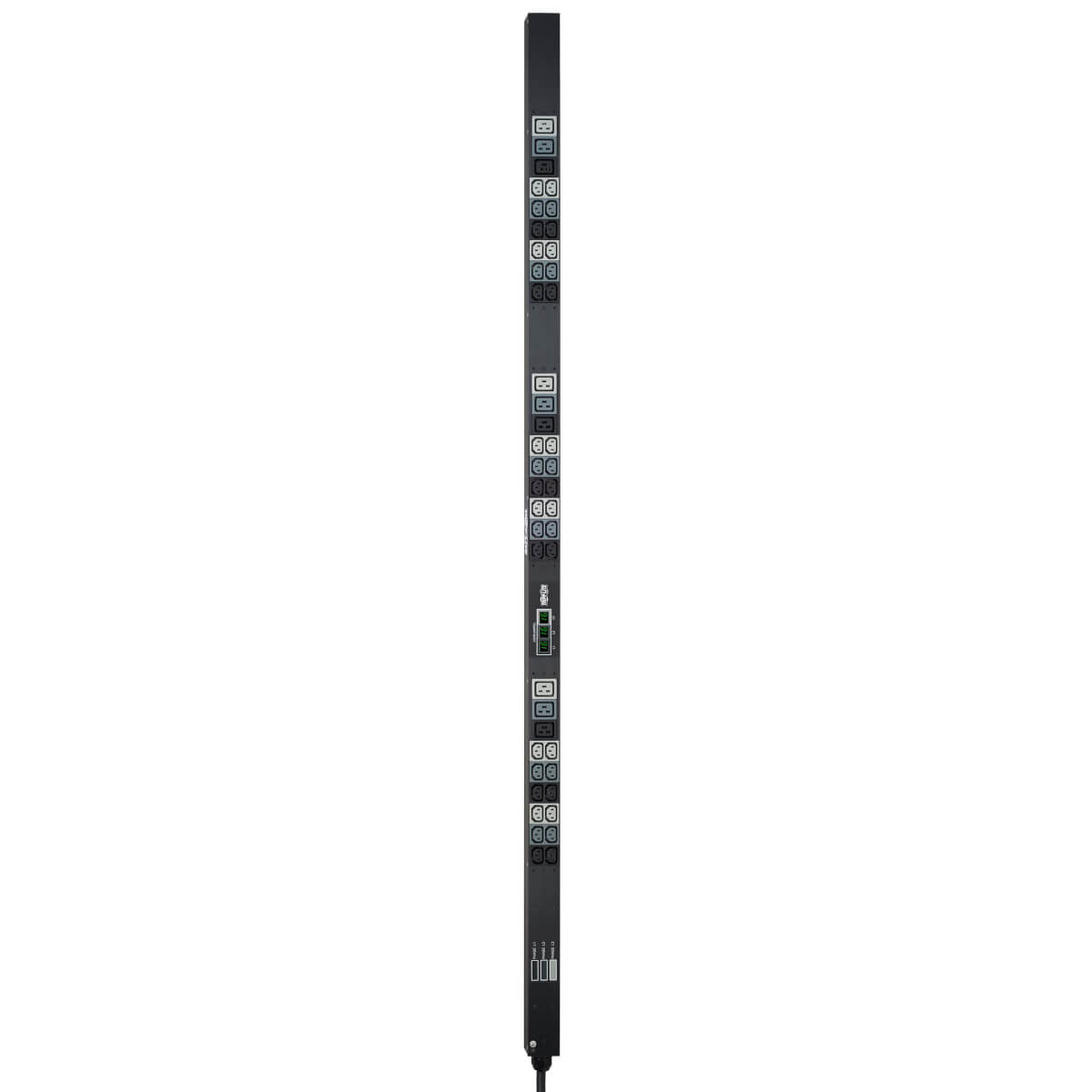 11.5kW Local Metered Power Distribution Unit / rack PDU (rPDU)\n380-415V IEC-309 Red 16/20A (3P+N+E) 3-phase input connection\n208-240V output with 36 C13 & 9 C19 single phase output receptacles\nSupports 50/60Hz worldwide applications\n0U / 1778mm vertical rackmount installation supported\nOutlets are arranged in 3 local metered 15 outlet load banks\nIncluded cord retention brackets keep vital network equipment plugged in and continuously powered\nToolless mounting supported in button-mount compatible racks, plus nut-and-bolt mounting brackets for other mounting applications (set of 2 9mm buttons pre-installed, 2 9mm and 4 6mm spare buttons included) for other mounting applications\nTAA Compliant