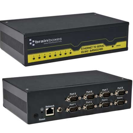 Ethernet to Serial device server providing access to eight RS422/485 serial ports. Data transfer rates up to 1,000,000 baud, coupled with 1Mbit/s line drivers deliver uncompromising performance. Our ES range provides simple instant networked serial ports. RS485 - 1 twisted pair - half duplex configuration with autogating provides trouble free data transmission due to automatic control of data direction. A web interface allows secure configuration and control of the serial ports over a local network or the internet using any browser. For Windows our in-house designed (32 bit and 64 bit) driver gives you local COM ports, retaining existing software applications and allowing you to connect across your network to remote devices just as if they were attached locally. Serial Port Tunneling (individually configurable) allows serial cable replacement over any distance, no software required. You can access the device via TCP/IP sockets from any networked device like an Android tablet, PC or phone. On Windows OS TCP/IP sockets are handled by the Winsock API, this will differ on other OSs.